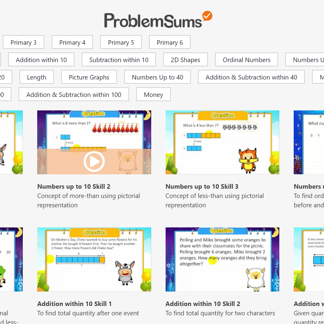 - Develop greater confidence in solving word problems, by applying problem solving skills learnt in different variations of the word problems